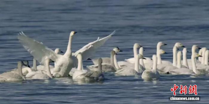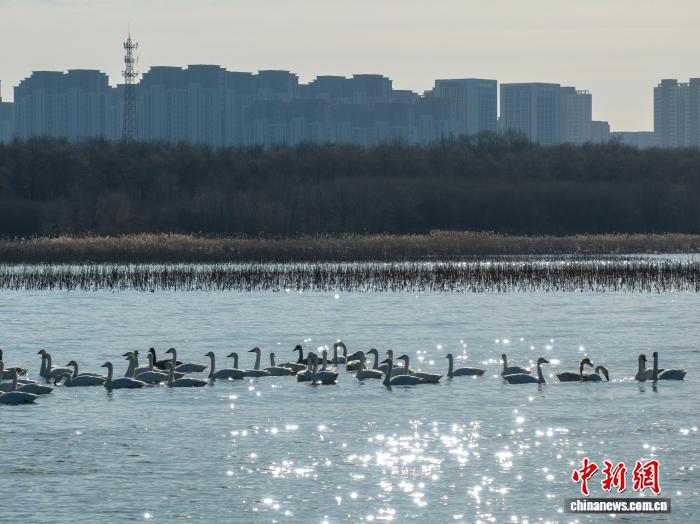 越冬白天鹅“栖居”山西长治漳泽湖国家城市湿地公园